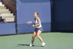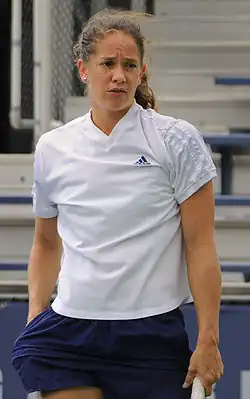 In the women's competition, Jelena Janković, Svetlana Kuznetsova, Vera Zvonareva, Marion Bartoli, Victoria Azarenka, Patty Schnyder, Caroline Wozniacki, Francesca Schiavone, Anabel Medina Garrigues, Katarina Srebotnik, and Sybille Bammer all made safe passage into the second round.[10] Nadal's Olympic counterpart, Elena Dementieva, made hard work of her win against Akgul Amanmuradova,[11] and former champion Lindsay Davenport, playing the US Open for the first time since her return to the sport from a break due to motherhood,[12] beat recent Bank of the West Classic winner Aleksandra Wozniak[13] in a comfortable two sets. Seeded losers included 2007 semifinalist Anna Chakvetadze, who lost to Ekaterina Makarova, making this her worst Slam finish in three years;[11] Maria Kirilenko, who lost to Tamira Paszek; and Shahar Pe'er, who lost to Li Na 2–6, 6–0, 6–1.[8]