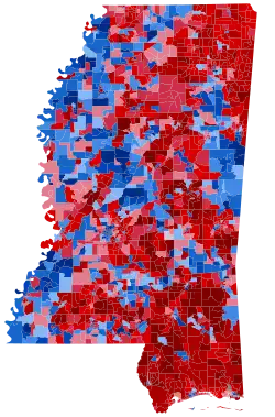 Mississippi is one of the most racially polarized states in presidential elections. African Americans uniformly vote Democratic while Whites vote Republican nearly as uniformly. In 2004, 14% of Caucasians voted for John Kerry and 10% of African Americans voted for Bush, according to exit polling.[18]