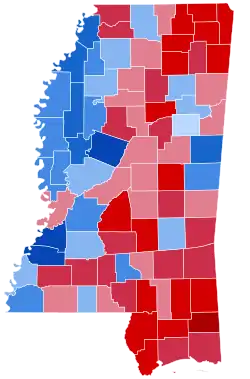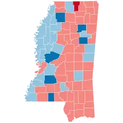 | Oktibbeha | 9,320 | 49.60% | 9,326 | 49.63% | 146 | 0.77% | -6 | -0.03% | 18,792 |