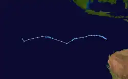 | Peak intensity | 110 km/h (70 mph) (10-min); 980 hPa (mbar) |