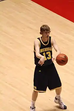 Harris was named as a finalist for the 2010 Bob Cousy Award and a Midseason Top-30 finalist for the 2010 John Wooden Award.[66] Novak was a District 4 first-team 2009 Academic All-District Men's Basketball Team selection as selected by ESPN The Magazine and College Sports Information Directors of America.[67][68] Sims and Harris were both selected as second team National Association of Basketball Coaches All-District 7.[69] Both the Big Ten coaches and the media selected Sims and Harris to the 2nd and 3rd All-conference teams, respectively. Sims was also recognized as Michigan's Big Ten Sportsmanship Awards honoree.[70][71] Harris and Novak were selected as Academic All-Conference performers.[72][73] Neither Harris nor Sims was drafted in the 2010 NBA draft.[74]