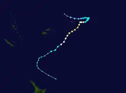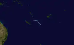 During March 30, RSMC Nadi reported that a depression had developed, along a trough of low pressure about 450 km (280 mi) to the southeast of Port Vila, Vanuatu.[29][30] During that day the system moved southeastwards before it was designated as Tropical Depression 15F during the next day.[31]