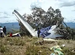 The 2009 Aviastar British Aerospace 146 crash occurred on April 9, 2009, when a British Aerospace 146 (BAe 146) crashed into Pikei Hill during a ferry flight from Sentani Airport to Wamena Airport, both in Indonesia's Papua province. All 6 crew members were killed. The aircraft was carrying voting paper to Wamena as well as several other goods, as a parliamentary election was held in the month. The wreckage was found in Pikei Hill, Tengah Mountain, Tangma, Yahukimo District.[1]