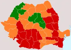 | Vaslui (PSD 45.80%, PDL 21.25%) | Timiș (PDL 38.32%, PSD 27%) | ||||||||||||||||
