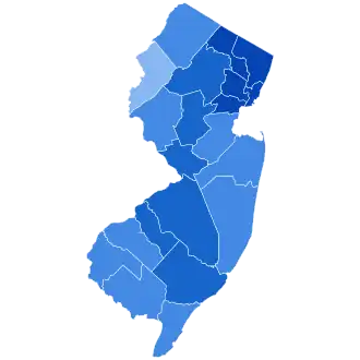 Christie: 40–50% 50–60% 60–70% 70–80% 80–90% >90% Corzine: 40–50% 50–60% 60–70% 70–80% 80–90% >90% Tie: 40–50% | |||||||||||||||||||||||||
