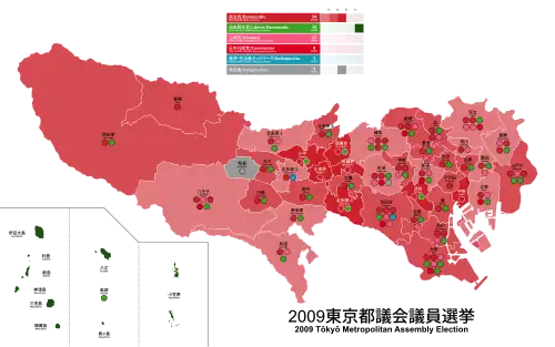 Prefectural elections for the Tokyo Metropolitan Assembly were held on 12 July 2009. In the runup to the Japanese general election due by October they were seen as an important test for Taro Aso's ruling coalition of the Liberal Democratic Party (LDP) and the New Komeito. New Komeito considers Tokyo as an important stronghold and had repeatedly asked Prime Minister Aso to avoid holding the two elections within a month of each other.[1]