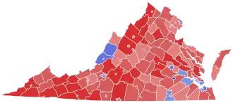 This would be the last time until 2021 that a Republican would win any statewide election in Virginia. This is also the last time any of the following counties have voted Republican in a statewide race: Albemarle, Fairfax, Prince William, Henrico, Sussex, Brunswick, and the independent city of Suffolk. Additionally, this is the last gubernatorial election in Virginia to be decided by double digits.
