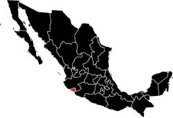 The first infected was registered in San Diego, California, on April 2, 2009, but it was misclassified as an H2N3 case.[15] It was not until April 13, with the first death in Oaxaca,[16] that further research was carried out, officially detecting the new type of virus on April 16.[17] The pandemic outbreak was first detected in the Federal District, where surveillance began picking up a surge in cases of influenza-like illness starting on March 18.[18] The surge was assumed by authorities to be "late-season flu" (which usually coincides with a mild Influenzavirus B peak[19]) until April 21,[20][21] when a CDC alert concerning two isolated cases of a novel swine flu was reported in the media (see 2009 swine flu outbreak in the United States).[22] Both cases were in US counties on the Mexico – United States border, adjacent to one state in Mexico where the influenza surge had been detected. This was the missing link that connected the surge and the new strain, and established the high suspicion of an outbreak. One study estimated that by the end of April, at least 113,000 to 375,000 people in Mexico had been infected.[23] Then, in early May, influenza activity began to decline, likely due to the shutdown of most public places in response to the outbreak. However, H1N1 remains present in Mexico, and as of December, was classified by WHO as widespread.