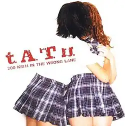 200 km/h in the Wrong Lane (also titled t.A.T.u. in Japan)[2] is the second album, and first English-language studio album, by Russian music duo t.A.T.u. It was first released on 7 October 2002 in Europe, then on 10 December 2002 in North America, by Interscope Records.[1] It is the duo's first studio album to be associated with Interscope after signing to Universal in 2001. Due to the duo's lack of English vocabulary, the album was produced and written by producers such as Trevor Horn, Martin Kierszenbaum, Sergio Galoyan, Robert Orton and Ivan Shapovalov, who was placed as the duo's manager and executive producer. 200 km/h lyrically explores themes such as teenage rebellion, love, sexuality, sadness, independence and social rebellion.