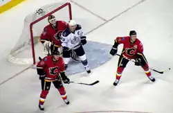 10. ^ Hall, Vicki (October 12, 2010). "Injured Flames form crowd in sick bay". Calgary Herald.