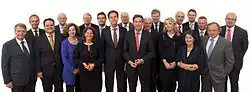 Rutte's second preference, a middle coalition of VVD, PvdA and CDA, was then explored. Verhagen showed himself willing to participate in discussions "in the national interest", but the option was "undesirable" for PvdA leader Job Cohen. Cohen only wanted to participate in the discussion if D66 and GroenLinks joined (also known as the Rainbow Coalition).[7] This option was not supported by Halsema and Pechtold. Cohen also withdrew the option within an hour.[8] SP leader Emile Roemer suggested a coalition of PvdA, CDA, SP and GroenLinks, but this was rejected by the other leaders. After these failed attempts, Rosenthal sent his final report on 25 June in which he recommended appointing a VVD and a PvdA informateur to find options for a cabinet within the 'broad political centre'.[7]