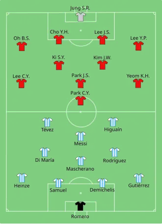 - ^ a b "Tactical Line-up – Group B – Argentina-Korea Republic" (PDF). FIFA.com. Fédération Internationale de Football Association. 17 June 2010. Archived from the original (PDF) on 5 July 2010. Retrieved 17 June 2010.