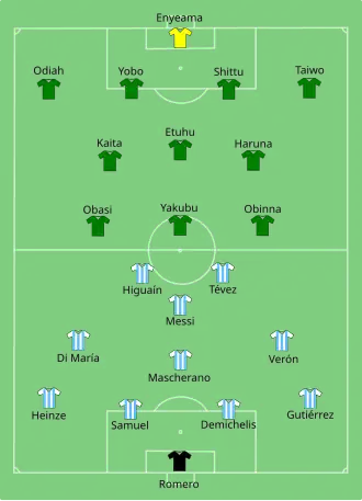 - ^ a b "Tactical Line-up – Group B – Argentina-Nigeria" (PDF). FIFA.com. Fédération Internationale de Football Association. 12 June 2010. Archived from the original (PDF) on 5 July 2010. Retrieved 13 June 2010.