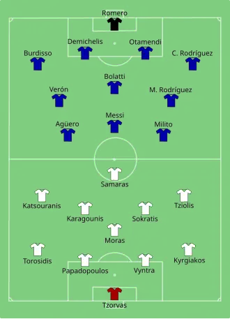 - ^ a b "Tactical Line-up – Group B – Greece-Argentina" (PDF). FIFA.com. Fédération Internationale de Football Association. 22 June 2010. Archived from the original (PDF) on 2 July 2010. Retrieved 22 June 2010.