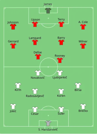 - ^ a b "Tactical Line-up – Group C – Slovenia-England" (PDF). FIFA.com. Fédération Internationale de Football Association. 23 June 2010. Archived from the original (PDF) on 9 November 2012. Retrieved 23 June 2010.