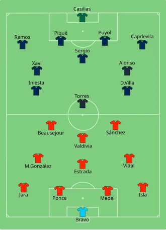 - ^ a b "Tactical Line-up – Group H – Chile-Spain" (PDF). FIFA.com. Fédération Internationale de Football Association. 25 June 2010. Archived from the original (PDF) on 2 July 2010. Retrieved 25 June 2010.