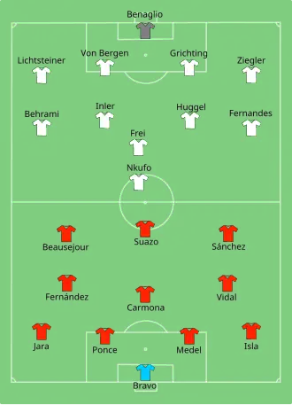 - ^ a b "Tactical Line-up – Group H – Chile-Switzerland" (PDF). FIFA.com. Fédération Internationale de Football Association. 21 June 2010. Archived from the original (PDF) on 20 September 2011. Retrieved 21 June 2010.