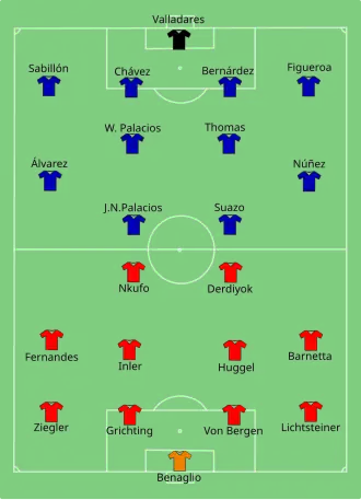- ^ Due to a one-match suspension of manager Reinaldo Rueda, assistant manager Alexis Mendoza took his place on the bench.