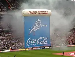 In the matches between the sides during the regular season, the first encounter at the County Ground in October 2009 ended in a 1–1 draw while the return match at the New Den the following May was a 3–2 victory for Millwall.[9] Swindon's top scorer during the regular season was Billy Paynter who had scored 29 goals (26 in the league, 1 in the FA Cup and 2 in the League Cup), followed by Austin with 19 (all in the league).[10] Top marksmen for Millwall were Morison, who had scored 22 goals during the regular season (20 in the league and 2 in the FA Cup) and Neil Harris with 18 (13 in the league, 1 in the FA Cup and 4 in the League Cup).[11] According to The Daily Telegraph, winning the match was worth £5 million to the successful club.[12]