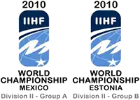 The 2010 IIHF World Championship Division II was a pair of international ice hockey tournaments organized by the International Ice Hockey Federation. The tournaments were contested between 10 and 17 April 2010. Participants in this championship were drawn into two separate tournament groups. The Group A tournament was contested in Naucalpan, Mexico.[1] Group B's games were played in Narva, Estonia.[2] Spain and Estonia won Group A and Group B, respectively, to earn promotion to Division I at the 2011 IIHF World Championship. Meanwhile, Turkey and Israel finished last in Group A and B and were relegated to Division III for 2011. These four teams were replaced by Serbia and Croatia, which were relegated from Division I, and Ireland and North Korea which earned promotion from Division III.