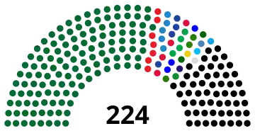The other laws stipulate that anyone currently serving a prison term is barred from running or voting in the elections for the upper and lower houses.[28] A 224-member House of Nationalities will have 168 elected candidates and 56 nominated by the military chief, while the 440-member House of Representatives will have 330 elected civilians and 110 military representatives.[28] At the same time, the results of the 1990 elections were annulled as they did not comply with the new election laws.[29]
