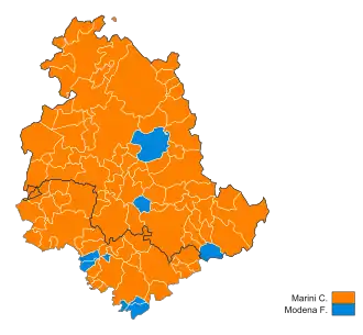 The three main candidates were Catiuscia Marini of the Democratic Party, Fiammetta Modena of The People of Freedom and Paola Binetti of the Union of the Centre.
