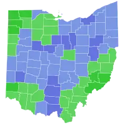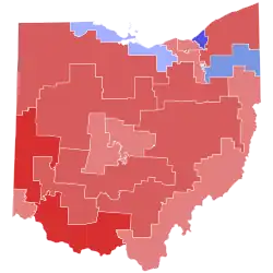Winning the election, Portman received 57% of the votes. He received the majority of votes in 82 of 88 counties and in 15 of 18 Congressional districts, including the district of liberal U.S. Congressman Dennis Kucinich.[48]