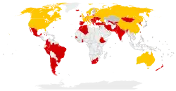 Grey represents countries that did not participate