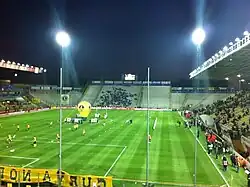 Parma will play their first cup match on around 21 August 2011, entering at the third round. The draw for the 2011–12 edition of the Coppa Italia was made on 27 July in Milan and Parma were drawn to play the winners of Serie B outfit Grosseto's clash against the winners of the tie between Lega Pro Prima Divisione sides Como and Prato at home.[67] A 2–1 win for Prato over Como saw them progress to the second round,[68] but the Tuscan side came unstuck the following week, succumbing 3–2 to Grosseto.[69] Grosseto travelled to Parma for the tie on 21 August, but were soundly beaten 4–1. Parma could not break down a stubborn Grosseto outfit playing a defensive 4–5–1 until the stroke of half-time when Italian international and man of the match Sebastian Giovinco converted Francesco Valiani cross with scissor kick. Francesco Modesto on the other flank then delivered a cross for Graziano Pellè to see Parma double their lead with half an hour to go. Hernán Crespo then scored two goals in the last ten minutes as a substitute, his goals bisected by a Gabriel Paletta own goal, as Franco Colomba's 100% record at the Tardini remained intact and Parma completed their fourth victory in a row on home soil for the first time since April and May 2007 under Claudio Ranieri, although the team did fail to keep a clean sheet in a home Coppa Italia match on the twelfth consecutive occasion in a run which extended back to 10 May 2002 when they overcame Juventus 1–0.[70]
