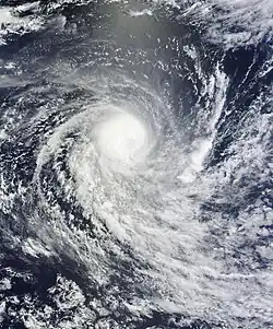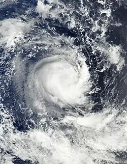 On June 1, a tropical wave formed in the South West Indian Ocean. Two days later, the tropical wave organized into a low-pressure area, due to favorable conditions. On June 5, the low-pressure area was upgraded to a tropical disturbance by Météo-France, 400 miles (645 km) ENE of the Agaléga Islands, and later to a tropical depression. On June 6, JTWC designated it as Tropical Cyclone 20S, with the Mauritius Weather Service upgrading it to a moderate tropical storm naming it "Kuena" soon afterwards. Later, on the same day, the storm was upgraded to a severe tropical storm by MFR.[50] On June 7, dry air, and moderate vertical wind shear caused the system's low level circulation center to become exposed. Soon afterwards, Kuena began to weaken. Late on June 7, RSMC La Réunion issued their last advisory on Kuena, as the storm weakened to a remnant low. Kuena was one of the most off-season storms ever recorded, forming approximately 2 months after the official end of the season.