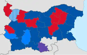 GERB won 14 regional mayorships, BSP 8, DPS 1. 4 other incumbent mayors won without the backing of those three parties.[1]