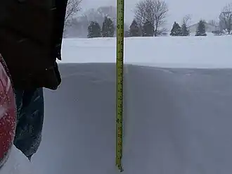 | Maximum snowfall or ice accretion | 27.0 in (69 cm) snowfall – reported in Antioch, Illinois[1] 1.0 in (2.5 cm) ice accretion – reported in Cashtown, Pennsylvania |