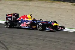 The 2011 Italian Grand Prix (officially the Formula 1 Gran Premio Santander d'Italia 2011) was a Formula One motor race that was held on 11 September 2011 at the Autodromo Nazionale di Monza in Italy.[1] It was the thirteenth round of the 2011 Formula One season and was also the sixtieth time the Italian Grand Prix had been held at Monza. The 53-lap race was won by Red Bull Racing's Sebastian Vettel, the World Drivers' Championship leader, after he started from pole position. Jenson Button finished in second place for McLaren, and Fernando Alonso completed the podium in third position for Ferrari.[2]