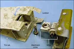 ![]() The recovered left trim tab of the aircraft after the accident | |