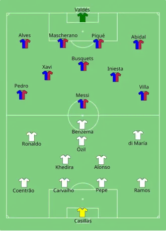 The 2011 Supercopa de España was a two-legged Spanish football match-up that was played on 14 and 17 August 2011. It was contested by Barcelona, the 2010–11 La Liga winners, and Real Madrid, the 2010–11 Copa del Rey winners. Barcelona won 5–4 on aggregate for their record-extending tenth Supercopa de España title.
