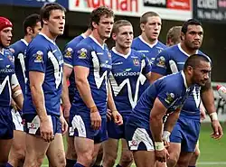 Following the completion of the domestic 2010 seasons in both the Super League and the National Rugby League, the international season began with the 2010 Four Nations, this year held in Australia and New Zealand. Thomas Leuluai was the only British-based player to be named in the New Zealand Kiwis squad for the tournament—Greg Eastwood played for Leeds Rhinos during 2010 and was also announced in the squad, but returned to Canterbury Bulldogs at the end of the season.[13][14] Sam Tomkins, who was named Rookie of the Year at the Rugby League International Federation awards, was named in the England team along with Darrell Goulding, Sean O'Loughlin and Stuart Fielden.[15][16] Leuluai featured in a pre-Four Nations test match against Samoa, while Tomkins was influential in England's 18–18 warm-up match against New Zealand Māori, helping to set up a Ryan Atkins try and scoring one of his own.[17][18] However, no Wigan player managed to score for England in the whole tournament as the national team only managed one win against the minnows, Papua New Guinea.[19] In contrast, Leuluai played in a Kiwis side which made the final, and stole victory from Australia with a Nathan Fien try in the 79th minute at the Suncorp Stadium in Brisbane.[20]