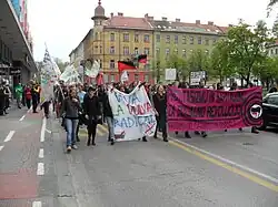 The 2012–2013 Slovenian protests were a series of anti-establishment and anti-government protests. Protesters expressed disapproval with the country's ruling political elite, including Maribor mayor Franc Kangler, prime minister Janez Janša, and parliamentary opposition leader Zoran Janković (all of whom stood accused of corruption by Commission for the Prevention of Corruption).[3][4][5][6][32]
