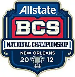 The 2012 BCS National Championship Game (branded as the 2012 Allstate BCS National Championship Game for sponsorship reasons) was a postseason college football bowl game between the Alabama Crimson Tide and the LSU Tigers, and determined the national champion of the 2011 NCAA Division I FBS football season on Monday, January 9, 2012, at the Mercedes-Benz Superdome in New Orleans, Louisiana. The game was part of the 2011–2012 Bowl Championship Series and a rematch of regular season foes.[3] Alabama beat LSU 21–0 to win their 14th national championship, marking the first shutout in a national championship game since the 1992 Orange Bowl and the first ever shutout in a BCS bowl game.[4][5][6] The game had the third-lowest TV rating, 14.01, in the 14-year history of the BCS National Championship game.[7][8]