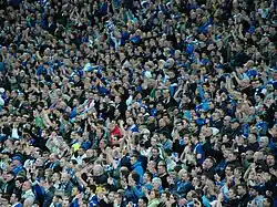 Both clubs received an allocation of approximately 31,000 tickets. Cardiff fans would be housed in the East End of the stadium, while Liverpool fans were allocated the West End of the stadium.[30] Ticket prices were increased from last year's final, with the most expensive tickets costing £90 up £4 from the previous year. The least expensive tickets cost £40, which was £2 more than last year.[30][31] It was decided that before the match started national anthems would not be played. This decision was made to avoid spectators jeering the anthems, as happened during the 2008 FA Cup Final between Portsmouth and Cardiff.[32]
