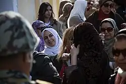 The new constitution no longer specifically forbids discrimination on the basis of gender[13] but calls for freedom from discrimination by declaring, under principle number five of the constitution's preamble,[17] "Citizens are equal before the law and are equal in general rights and duties without discrimination between them based on gender, origin, language, religion, belief, opinion, social status or disability." It also explicitly states in article 68 that "The State is committed to taking all measures to establish equality between women and men in political, cultural, economic and social life and all other fields without prejudice to the provisions of Islamic Sharia." The constitution also secures particular care for mothers and children in Article 10 by ensuring that "the State provides mother and child services for free and guarantees for women health, social, and economic care."[16] These provisions are closely related to earlier Egyptian constitutions (1956 and 1971).[18]