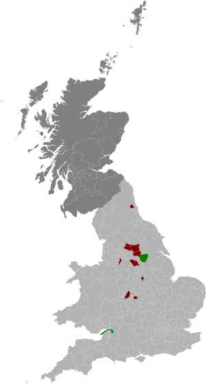 Parliamentary approval was granted for referendums to be held in Birmingham,[2] Bradford,[3] Bristol,[4] Coventry,[5] Leeds,[6] Manchester,[7] Newcastle upon Tyne,[8] Nottingham,[9] Sheffield[10] and Wakefield.[11] The government had also intended to hold referendums on whether to introduce directly elected mayors in Leicester and Liverpool, however before the government could order these referendums, the two city councils had already decided to adopt a mayoral system themselves. Leicester City Council voted to introduce a mayor in 2010 without holding a referendum, and an election was held in 2011 for the position.[12] Meanwhile, despite legislation being passed for a referendum in Liverpool,[13] the City Council voted to bypass the referendum and to instead hold a mayoral election on the same day as other local elections in May.[14]