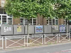 Candidates who advance to the second round have the option of withdrawing. Usually this happens in a triangulaire, where the party and/or candidate that finished third in the first round prefers to favour one of the two leading candidates. In the 2012 election, for example, third-placed UMP candidate Roland Chassain in the Bouches-du-Rhône's 16th constituency withdrew in order to help the National Front candidate defeat the Socialist candidate.[21] In addition, the parties of the mainstream left (Socialist, Greens, Left Front, Radical Party of the Left, various smaller parties) have a long-standing agreement whereby they do not stand against one another in the second round. If two of them advance to the second round in the same constituency, the less-well-placed of the two automatically withdraws. In some cases, this means a triangulaire is avoided, and the left is united against a single right-wing candidate. In the 2012 election, for example, in the Hauts-de-Seine's 11th constituency, incumbent MP and Left Front candidate Marie-Hélène Amiable narrowly finished second (29.20%) behind Socialist candidate Julie Sommaruga (29.93%). Amiable withdrew, supporting Sommaruga in her runoff against New Centre candidate Jean-Loup Metton, who had finished third in the first round with enough support to advance to the second (24.15%). In other cases, this rule means that only one candidate remains in the "second round". Thus, Socialist Najia Amzal withdrew in favour of Left Front candidate and incumbent MP Marie-George Buffet in Seine-Saint-Denis's 4th constituency; Left Front candidate Patrick Le Hyaric withdrew in favour of Socialist candidate Élisabeth Guigou in Seine-Saint-Denis's 6th constituency; Left Front candidate and incumbent MP Pierre Gosnat withdrew in favour of Citizen and Republican Movement candidate Jean-Luc Laurent in the Val-de-Marne's 10th constituency; and Green candidate Stéphane Gatignon withdrew in front of the Left Front's incumbent MP François Asensi in Seine-Saint-Denis's 4th constituency. In all these cases, no candidate of the right, centre or far right had reached the second round, meaning that the best-placed and sole remaining left-wing candidate was guaranteed to be elected in a one-person "runoff".[22]