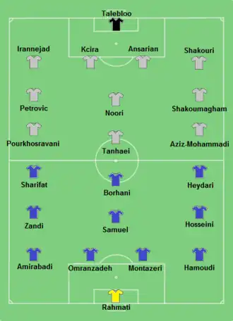 In the extra times, both team tried to have an aggressive play in order to scoring the winning goal. In 112, Milad Meydavoudi hit a free kick but was saved by defensive wall. Goran Jerković also had a chance but was out of the gate.