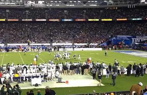 The 2012 Bridgepoint Education Holiday Bowl, the 35th edition of the game, was a postseason American college football bowl game between the Baylor Bears from the Big 12 Conference and the UCLA Bruins from the Pac-12 Conference (Pac-12), played on December 27, 2012, at Qualcomm Stadium in San Diego, California. The game was the final contest of the 2012 NCAA Division I-Football Bowl Subdivision (Division I-FBS) football season for both teams. The game kicked off at 6:45 p.m. PT and was broadcast on both ESPN TV and ESPN Radio. This is the first Holiday Bowl appearance for both Baylor and UCLA, as well as the first-ever meeting between the two teams.[3] It also marks the first time one of the Pac-12's Southern California teams has played in the Holiday Bowl.