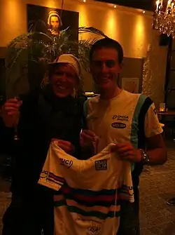 Niki Terpstra (with Ellen van Dijk ), after winning the world title in the team time trial