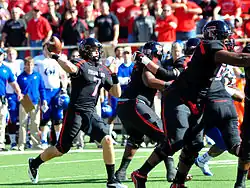 The Red Raiders set a school record for total yards allowed in a game, with only 86 being given up to the Demons.[16] Eric Stephens scored a pair of first-half touchdowns and Kenny Williams scored on pass from Seth Doege as the Raiders opened a 24–3 halftime lead. Doege left the game before the end of the third quarter, and his replacement, Michael Brewer, threw a pair of fourth-quarter touchdowns to Marcus Kennard as Texas Tech completed the season-opening rout.[3]