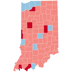 | Vanderburgh | 39,389 | 54.26% | 31,725 | 43.71% | 1,474 | 2.03% | 7,664 | 10.55% | 72,588 |