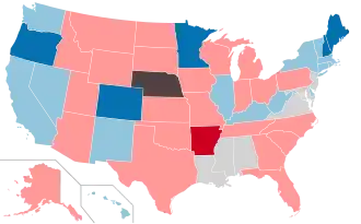 Map of lower house elections: Democrats gained control Democrats retained control Republicans gained control Republicans retained control Non-partisan legislature No regularly-scheduled elections