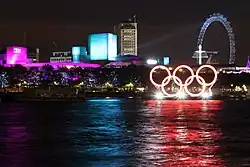 Olympic Rings by the River Thames on 6 August - 27 July – 12 August – London hosts the 2012 Summer Olympics, beginning with an opening ceremony, and making the UK capital the first city to host the Games for a third time. The closing ceremony is on 12 August.