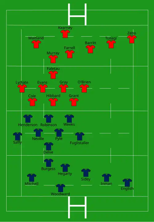 | Try: Folau (2) 12' c, 34' m Con: O'Connor (1/2) 13' Pen: O'Connor (1/3) 51' Beale (2/4) 61', 68' | Report | Try: North 25' c Cuthbert 48' c Con: Halfpenny (2/2) 27', 48' Pen: Halfpenny (3/4) 23', 31', 65' |